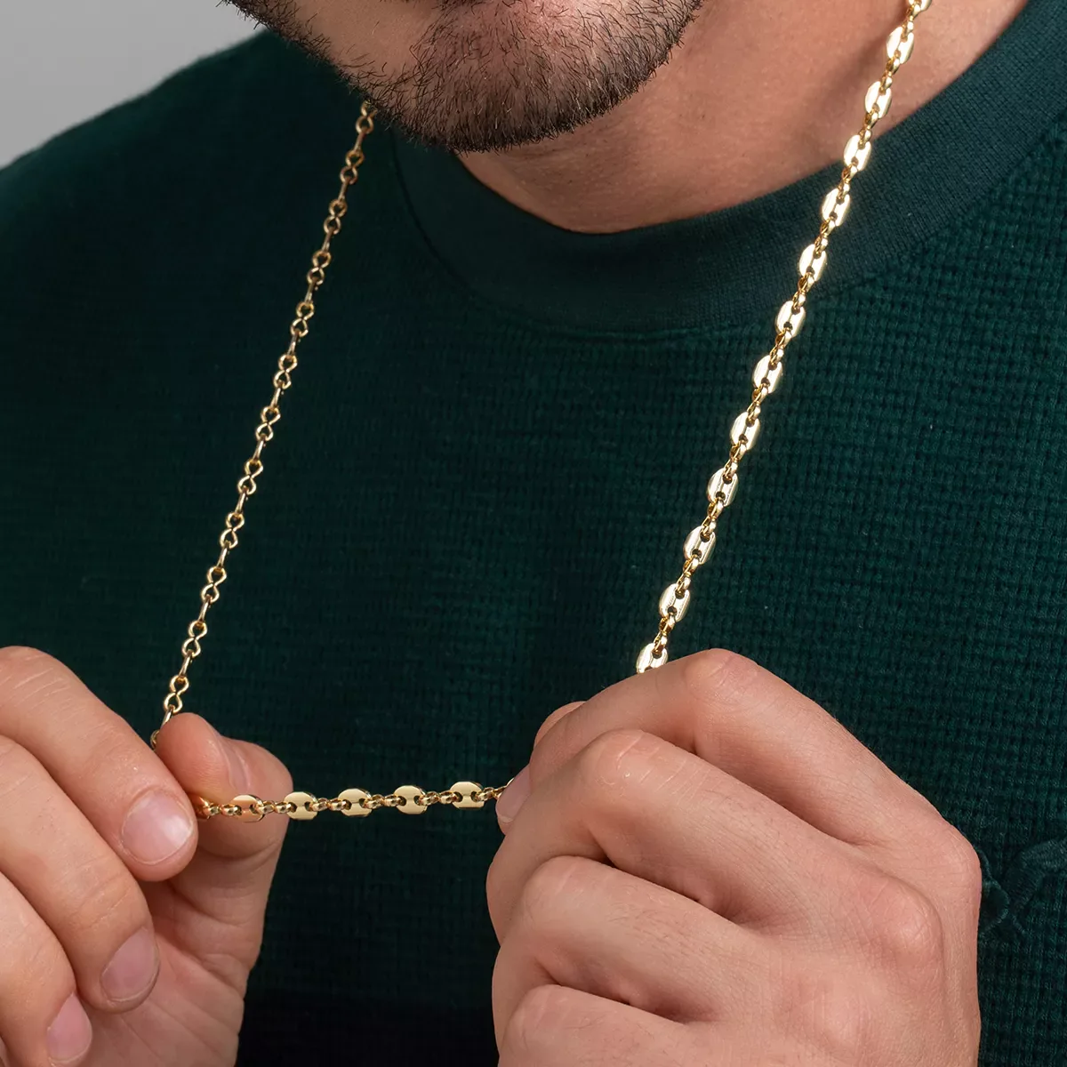 Nuestra cadena de oro laminado de 18k con tejido Gucci es perfecta para cualquier situación.