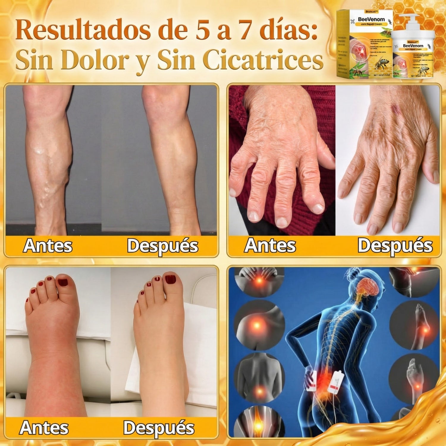 - 🌿 Ingredientes clave: veneno de abeja (apitoxina), mentol, aloe vera, aceites esenciales