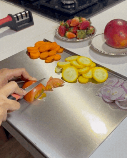 A diferencia de las tablas de plástico o madera, que pueden albergar bacterias o filtrar sustancias químicas, el titanio es naturalmente no tóxico, no poroso y antibacteriano, lo que lo convierte en uno de los materiales más seguros para la preparación de alimentos.